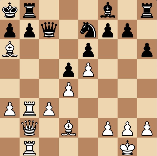 (JvdB) Maandagavond kreeg H3 het bijna honderdjarige HSV op bezoek. Gegeven het ratingverschil leek het een zware opgave, maar aan het eind van de avond stond er een ruime 5½-2½ op het scorebord. Hoe kwam die tot stand? We beginnen met onze “youngsters”. Diëgo Bhoelan speelde scherp in een variant in de Tarrasch met een pionoffer. Het stond redelijk gelijk tot zijn tegenstander een fatale fout maakte. Die zag niet dat hij schaak stond en sloeg met zijn dame een paard van Diëgo zonder het schaak op te heffen. Hij gaf onmiddellijk op. Van Ib Mugge werd het nodige geduld gevraagd omdat zijn tegenstander een kleine twintig minuten te laat kwam. Vervolgens kwam Ib behoorlijk onder de druk te staan, maar hield stand. Sterker, het eindspel wist ook hij bekwaam naar winst te leiden. Minder fortuinlijk waren Alec Veld en Mark Engelsman. Alec moest zijn meerdere erkennen in Hans de Haan (NB. Teamgenoot van Alecs vader Coen in het schaakteam van het ministerie van VWS). Mark was overgehaald om de zieke Djezz Kanbier te vervangen. Zodoende maakte hij, na diverse uitnodigingen te hebben afgeslagen, zijn langverwachte debuut in de wereld van het externe schaken. Na een saaie opening (hij prefereert kamikaze-schaak) probeerde Mark naar zijn eigen woorden krampachtig onder de druk op de damevleugel uit te komen. Met succes: na 21 zetten had hij onderstaande stelling bereikt (volgens de engine +3.98).