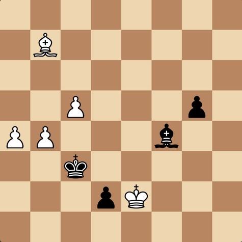 Met wit niet heel veel bereikt. Een heel klein plusje, te danken aan de positie van de zwarte koning. De vraag is: speel je Dg4 met behoud van pion g2 of speel je Dh4 om de koning in het centrum te houden? Ik speelde Dh4, een koning in het centrum mag een pion kosten. Uiteindelijk ergens een pion buit gemaakt en het eindspel gewonnen. Bord 1 Jan: